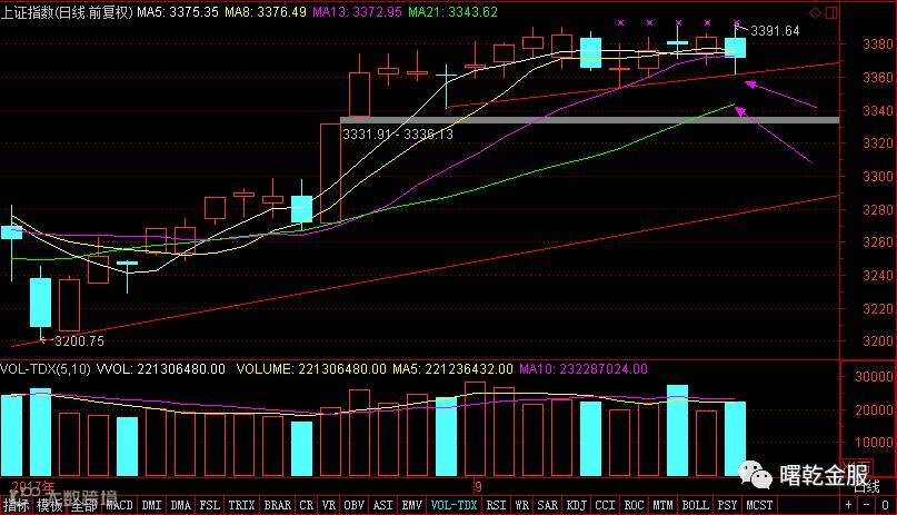 整体保持横盘,但接下来有延续调整的预期。从上周开始高位横盘之后,向上总是浅尝辄止,3个高点分别为3391.01,3391.07,3391.64,上攻无力可见一斑。