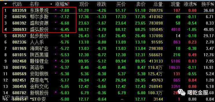 从上面的个股的跌幅板排行可以看出,大跌跌停股并不多,超过6%的仅有4个股票,并且没有个股跌停,可见整体市场依然比较抗跌。