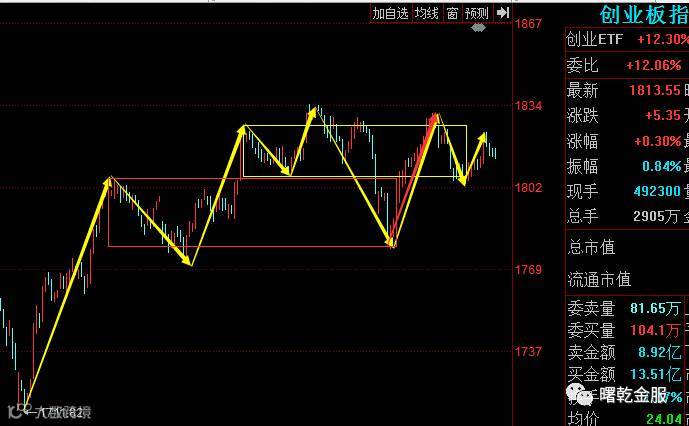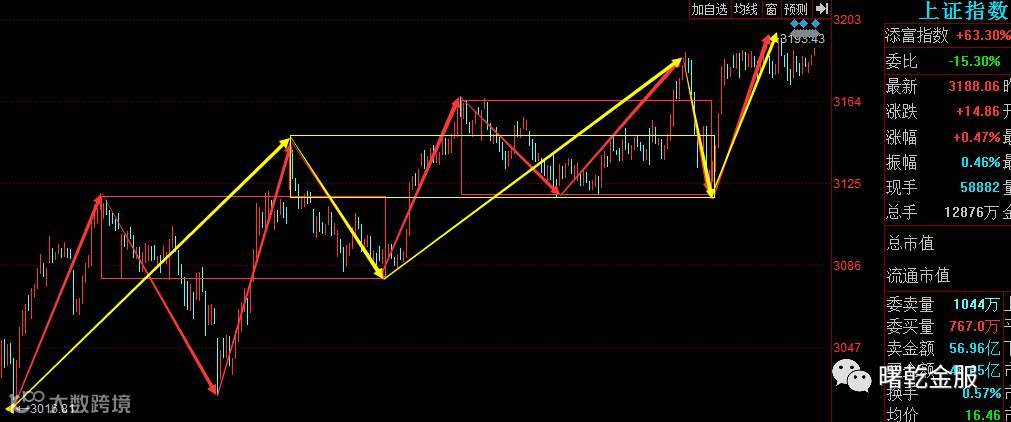 从黄色线看,大盘30分钟级别反弹走出了一个中枢,回调只要不进入黄色中枢顶部支撑,三买形成,这样后续对应的反弹一定会出现。