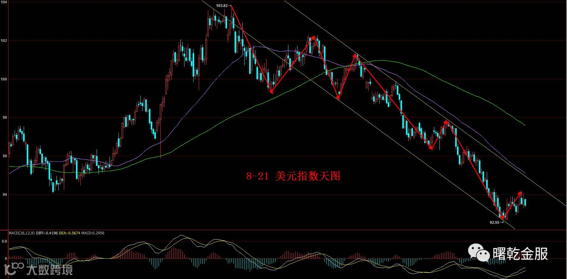 美指年初以来录得了逾8%的跌势,在8月初跌至92.53的低位后短期显示出见底信号,上周的反弹受到了特朗普和美联储因素的拖累。