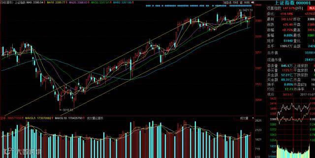 总体而言,市场从大周期来讲,后市行情上涨格局不变,短期市场有向上冲高的迹象,但要注意成交量的配合,同时注意3420附近高点能否站稳,操作上控制好仓位,高位减仓,低位布局。