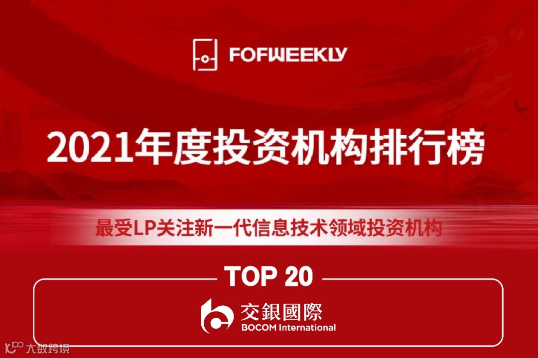 3月18日,由《母基金周刊》(FOFWEELY)主办的2021年度投资机构排行榜评选结果揭晓,交银国际(3329.HK)获评“最受LP关注新一代信息技术领域投资机构TOP 20”。