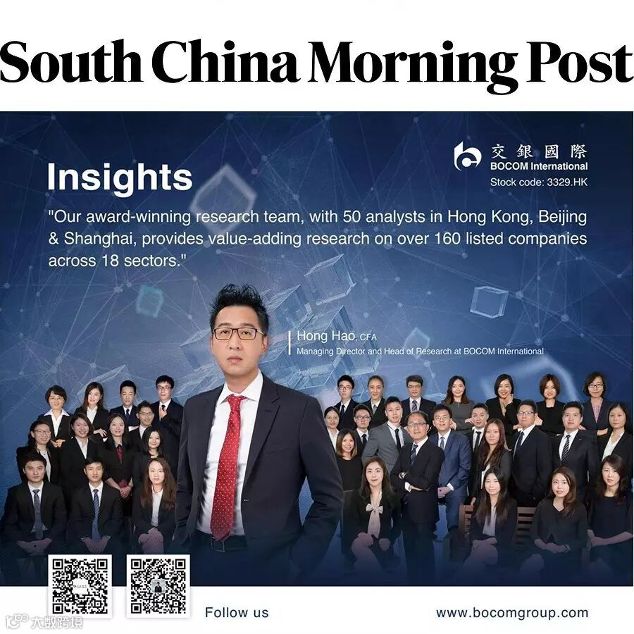 今天,交银国际董事总经理、首席策略师、研究部主管洪灝率领研究团队,登上香港最大英文报纸《南华早报》(South China Morning Post)版面!平日里“只见其文,未见其人”的交银国际分析师闪亮登场,有网友评价:“研值与颜值共担当!"