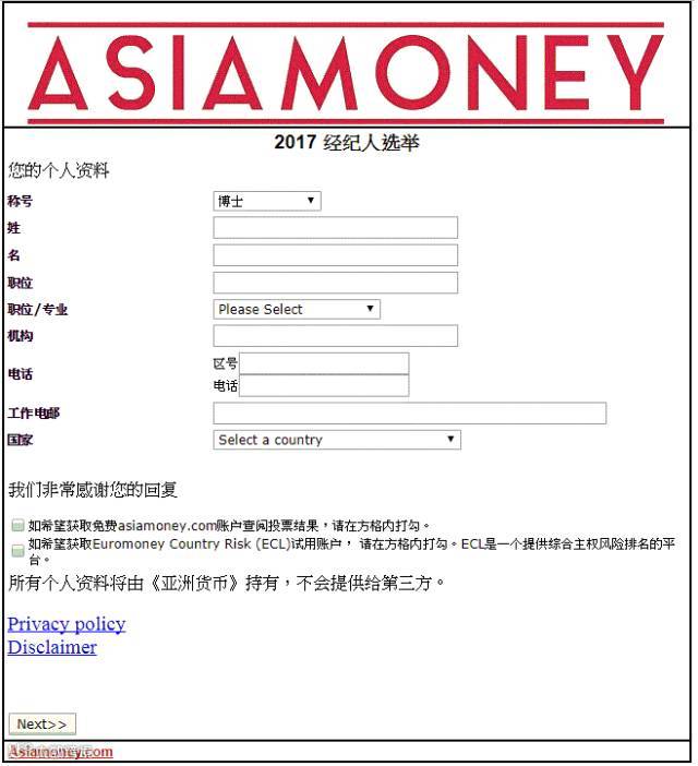 1) 请登录以下网址参与投票(复制地址Ctrl+C并粘帖Ctrl+V到浏览器里,或者点击最左下方的“阅读原文”,原文链接将带您到AsiaMoney的投票网站)