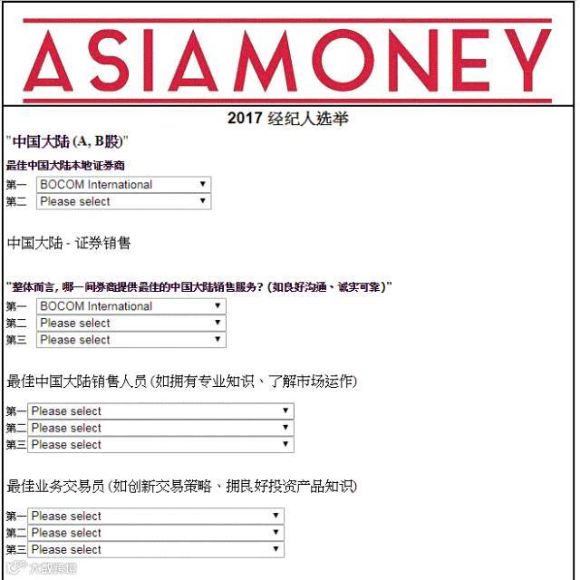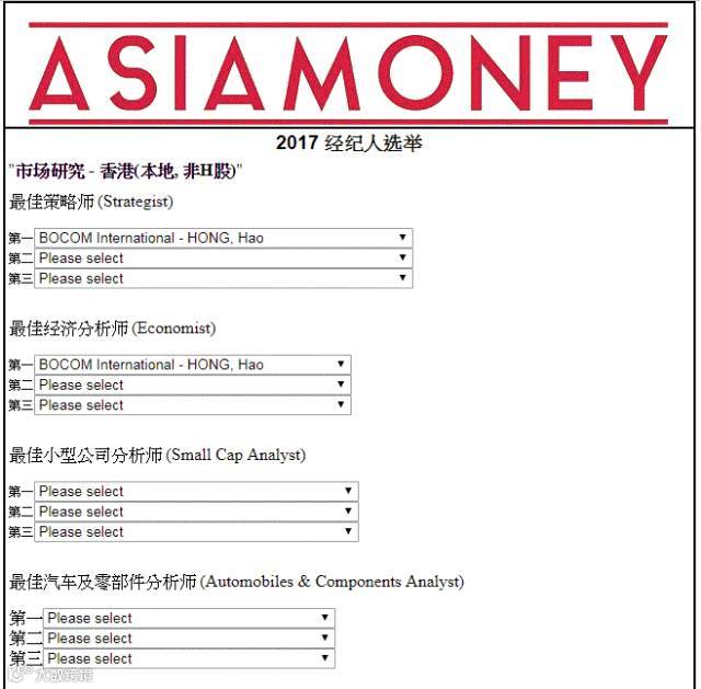 如您对交银国际研究团队的实力及成绩认可,敬请阅读本文投票指南(详见下文),并通过点击最下方“阅读原文”,登录Asiamoney Brokers Poll 2017亚洲货币券商投票网址为交银国际投出您宝贵的一票: