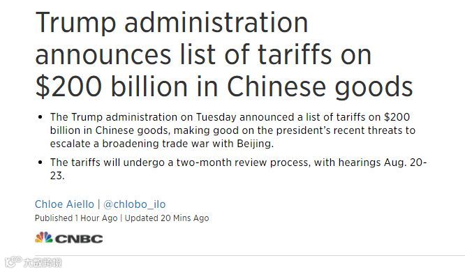 7月10日发表的声明,特朗普政府发布了一份针对中国2000亿美元商品加增关税的计划,目标产品清单涉及服装、电视零件和冰箱,加征的关税约为10%。