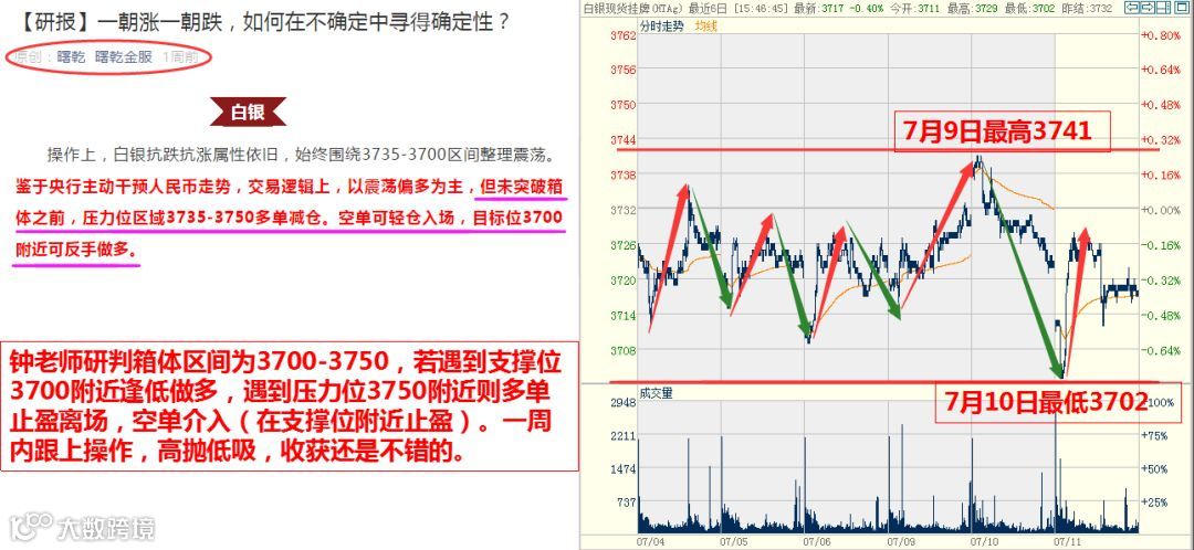 白银支撑区域3700-3690,压力位3740-3750。3735附近短空入场保护多单,中轴附近可出。3705附近多单入场,价格若站稳3740-3750可转变成长单持有。3680-3700中长线多单布局单。