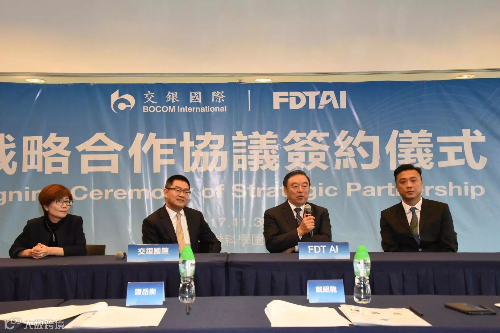 作为首家上市的中资银行系证券公司,交银国际与FDT在智能金融领域的携手共拓,可谓正当其时。通过签署协议,双方将进一步发挥资源和能力互补优势,充分利用一国两制下香港金融市场的独特优势,把握“一带一路”和粤港澳大湾区发展机遇,共同开拓创新型金融产品新模式,并重点在智能个性化投资研究、智能交易系统、智能资管系统、人工智能客服系统等领域展开多层次合作,致力于为客户提供智能化的全方位综合金融服务。
