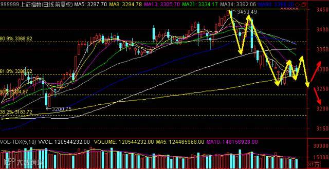 后市随着均线系统的下移,指数将进一步承压。21日均线近期将回落到近期震荡的高点3325附近,有助跌的效果。60日线的作为均线系统的最高位,将制约反弹的高度。