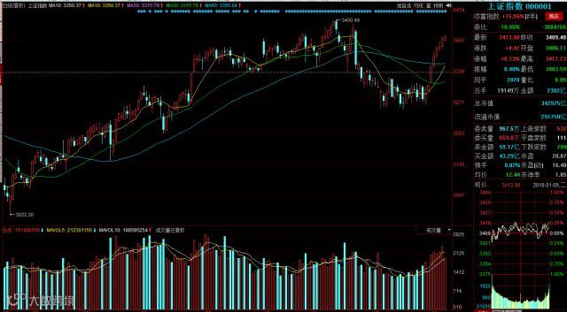 大盘自2018年开盘以来,不断创出新高,连续反弹上涨。今日再收阳柱,但成交量较前一日有明显缩量,这也说明市场对于大盘连续创高点有一定的畏惧感。