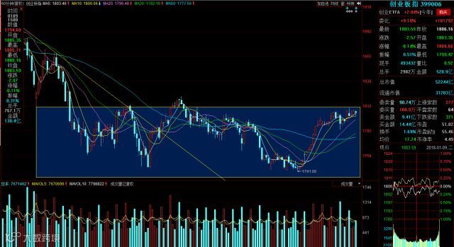 创业板今日整体微幅震荡,收于一根十字星,成交量相对来说仍旧比较低迷。
