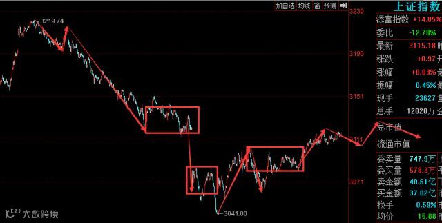 大盘从高位下跌以来,虽然力度比较强势,但是五分钟级别还是走出了本级别的趋势背驰,这几天的反弹就是背驰后的买点引发的反弹。今天指数五分钟进行窄幅震荡,但是回调没有跌破五分钟级别笔中枢的顶部支撑,明天预计还是会再次试探中枢顶部的支撑,如果不跌破,五分钟有三买机会,上方3126压力很大,突破失败要减仓规避,目前力度还是强势,风险控制是第一位的。