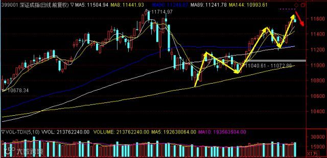 然而如此波澜壮阔的节奏之下,深成指却气定神闲,常规的冲高后窄幅震荡,虽然在尾盘也受累而震荡回落,但走势依然中规中矩,更加符合技术面的研判。