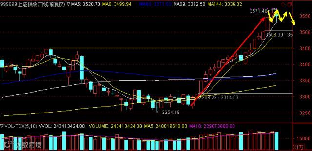 大盘从持续强势大涨到走平,预示着调整的预期加大。调整的方式有两种,一种是横盘震荡,是多头势能强劲的表现;另一种是常规的回调,即跌破8日线后走低一段。预计在经过大幅上涨之后,第二种调整的可能性较大。
