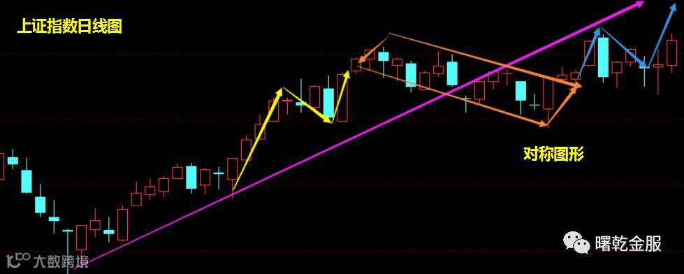 回到大盘日线图,若按对称图形走势,那么下周走的是蓝色折线的尽头部分,有望连阳上攻!