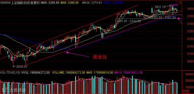 目前结构用了abc三小浪回调,按照这样的结构是要去破位本周低点的。不过下方有图中的上升通道线下轨支撑,这一线是自5月份以来重要的趋势线,作用力不小。如果破位该线,就看下方55日均线。