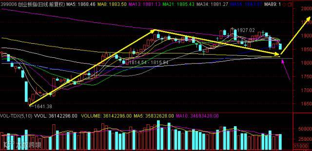 创业板昨日已经说明了,破位55日线的话,就要走向89日线与144日线的共振点位1822。今天如此下跌并收“光头光脚”阴线,明天大多还有惯性下跌。