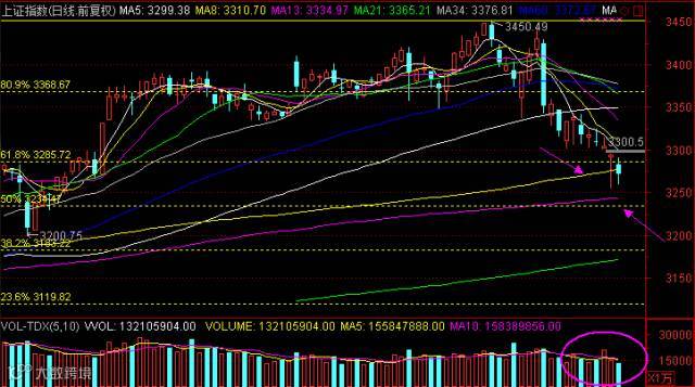 昨日强调,上证指数会有二次下探的节奏,而要延续反弹,不能跌破144日线3275。今天两次缓跌之后都尝试向上,但最终在尾盘破位下行,短线多还会反复尝试企稳3275,后市留意能否重新收回。