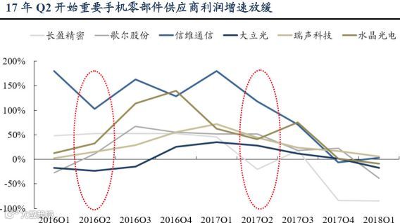 1)16年二季度开始,声学、结构件、光学等重要零部件供应商利润增速出现改善,并且持续至17年一季度;