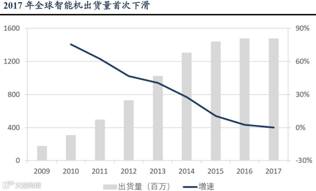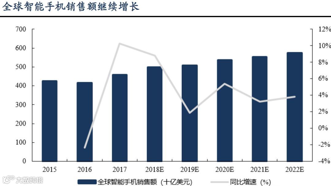 所以,创新没有质的提升、价格却升级明显,是延长换机周期的主要原因。相比中国市场,全球手机市场用户的换机周期稍短一些。根据IDC数据,17年全球智能机出货量首次出现同比下滑,但销售额还在增长。行业整个库存调整非常明显,体现在财报上,国内的这些产业链公司都是去年Q4到今年Q1普遍应收账款增加和存货大幅上升。