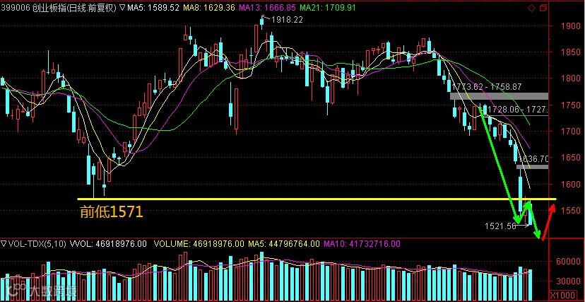 上图是创业板指数的走势图。近期持续下跌后,短线跌破前低1571,这个点位属于中期性的低点,可以作为近期多空得失的研判位。短线破位之后昨天反弹回踩,今天延续下滑,证明破位有效,市场还有继续回落的预期。后市重点关注1571能否收上去,如果收上去,预示着整体市场将逐步企稳并走出上涨,如果没能收上去,那么还会进一步下探。而对于上证指数,今天再次考验周二的低点,目前也还是在探底寻底的过程,暂时还没有止跌的迹象,短线还是要注意下跌的风险。