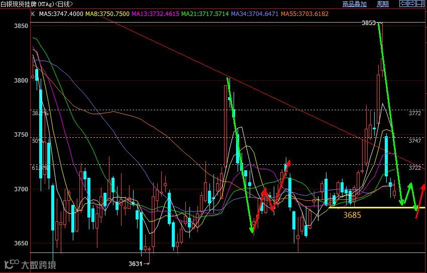 操作策略:短线的应对策略建议以逢高做空为主,以逢低做多为辅。逢高做空可在3720-3725布局空单,并以3750作为止损,以3685-3690作为止盈;逢低做多则建议在3685-3690博弈多单,并以3660作为止损,以3720-3725作为止盈,用小仓位应对。