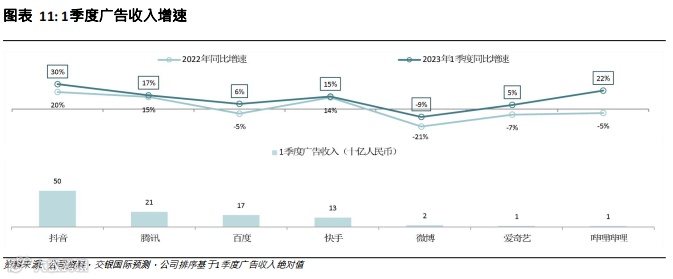 我们维持此前展望报告中的观点,广告行业表现是经济恢复的风向标。相比于2022年互联网公司广告业务表现,1季度主要公司的广告收入增速均呈恢复趋势。