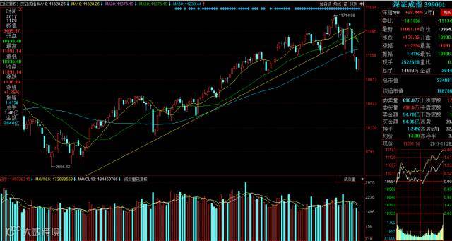 深证成指今日开盘小幅反弹,以一根小阳柱收线,成交量较前一日缩量。