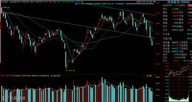 创业板在科技股集体反弹带动下,今日开盘强势反弹,涨幅达1.87%,以大阳柱收线,吞没前一日所有跌幅,但是在成交量方面并没有明显放量,同时要重点留意的是,目前创业板整体走势是一个下行趋势,今日的反弹并不能意味着后市会有上涨趋势出现。