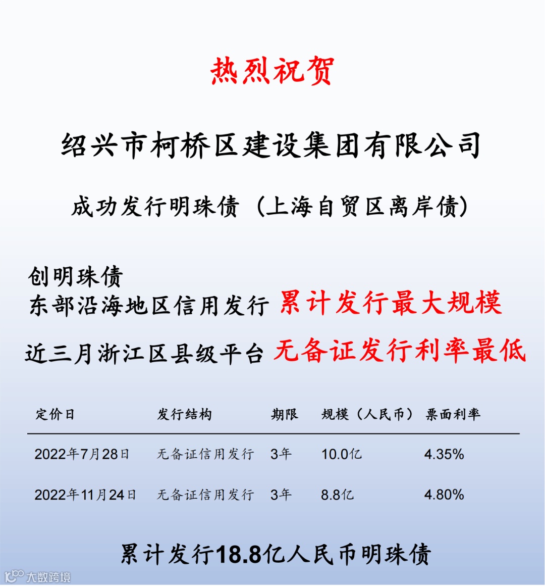 本次发行是交银国际继今年7月协助柯桥建设集团首发10亿人民币自贸区离岸债券后的又一次成功合作,累计助力其在自贸区离岸债券市场发行18.8亿人民币,创东部沿海地区最大融资规模。