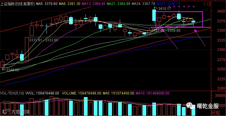 指数今日下探这两周的震荡低点,而后重新收回3365这个短线的研判位,探底回升,但毕竟是主力护盘的作用,明天多还会反复试探,继续守候这个点位。
