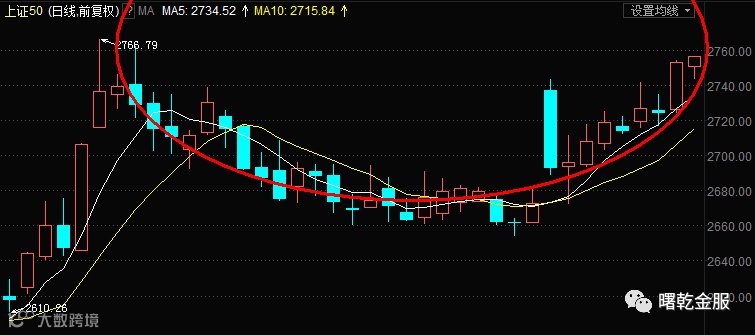 上证50在国庆节前就已经企稳了,整体形成“圆弧底”的底部反转形态。本周震荡走高,已经把上周一的“假阴线”吞没,短线前高有一定的压力,一旦突破,则后市将进一步走强。