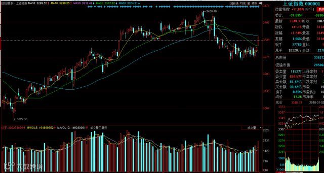 新年的第一个交易日,早间开盘上证指数跳空高开,价格强势上行。同时在近期连续震荡区间首次突破3335上方压力,以一根大阳柱放量收盘,整体表现较强劲。