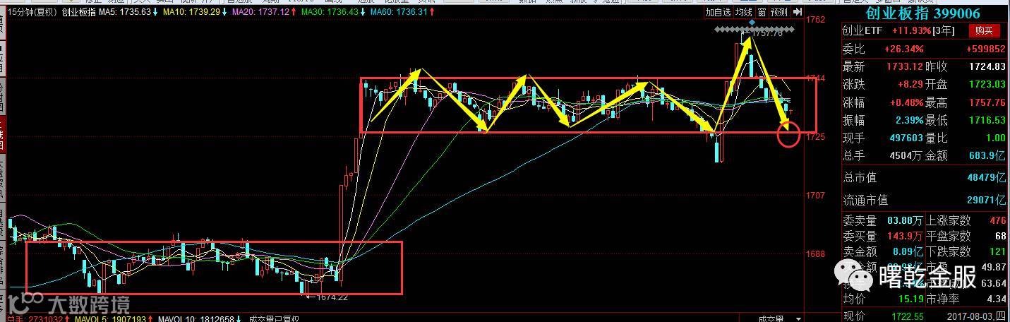 目前下方关注支撑1725点,上方压力关注1780点。如果日线级别的压力不能突破,那么创业板还将继续维持这种震荡行情。