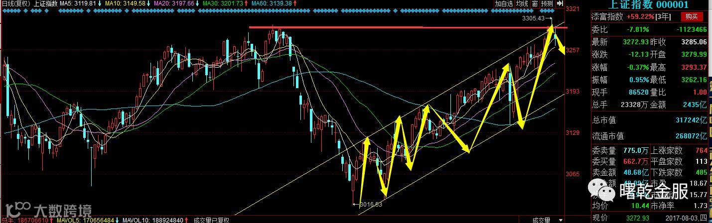 短线将有可能继续回调,下方支撑再看3260点附近。中线继续看好,短期回调,在操作方面适宜减仓,轻仓参与或者观望,切忌盲目追高。