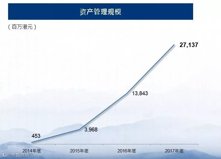 公司资产管理规模近年来实现快速增长,截至2017年12月31日,交银国际的资产管理规模约为271亿港元,较2016年增长约96%,在香港可比同业中已处于领先地位。投研能力不断增强,在国际知名财经媒体《财资》主办的G3债券最佳投资机构评选中,交银国际在300多家参选机构中脱颖而出,跻身亚洲十强。