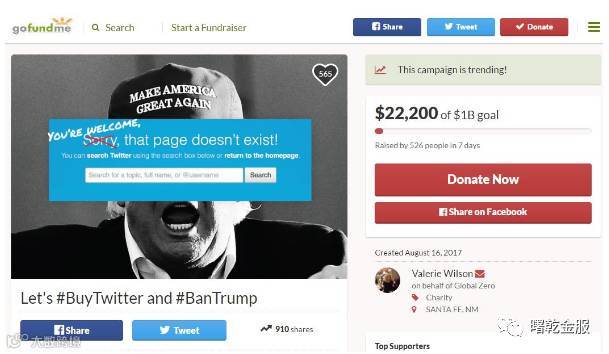 这可能是史上最有美国时代特色的一项封杀总统众筹:买下Twitter的控股权。