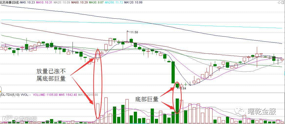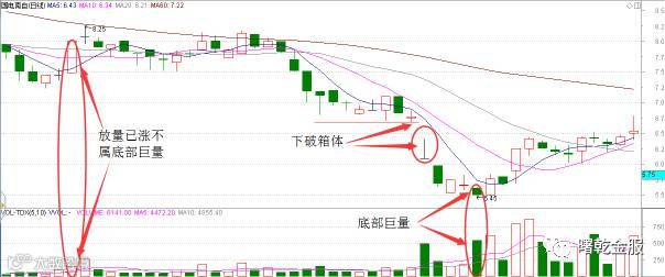 因此,下降趋势的底部或短期底部股价下挫或微涨放出那么大的量,是值得关注。