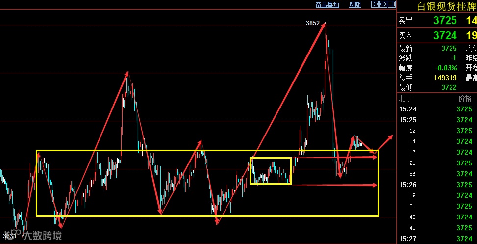 白银行情总结:白银昨天在回踩3720附近的支撑后再次拉升,最高3734点,没有创出新高,显示白银的反弹力度并不是很强,这符合我们的预期,指数短期不太可能再出现像美联储加息前夕的大幅拉升走势。目前白银上攻3730压力失败再次退守到3720附近,从走势看还会回踩下3720附近的支撑,然后再次拉升,但是这次拉升如果不能突破3745的重要压力,可以止盈多单,反手下空单。震荡行情短期会维持下去,这其实是很好的机会,箱体震荡,多空都存在机会,而且箱体震荡操作起来更加安全,当下踏准节奏才是根本。