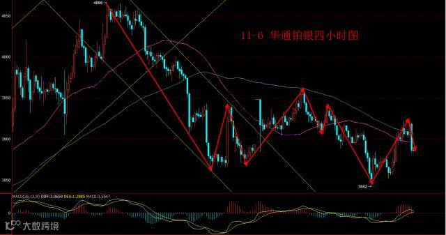 从技术走势来看,120MA和50MA保持向下发散,而MACD逐渐走向零轴上方,预示银价整体走势空方市场占据一定的上风,进一步巩固了中期处于下跌趋势的格局。