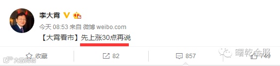 李大霄老师今晨发话,先上涨30点再说!