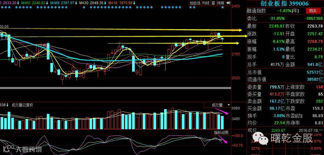 上证指数连续3日收高位阴十字星,再次收在5日均线下方。成交量依然没有放大,上方3060点一带继续压制,下方10日均线受到支撑。从技术指标上看,日线KDJ已经高位死叉向下,MACD红柱逐步消失,后期调整概率加大。从15分钟图上看,KDJ和MACD依然没有收敛,短线调整继续。在60分钟图上看,顶背离依然存在,支撑点在3028点附近。创业板收在10日均线下方,弱势非常明显。前期突破冲破了2250点平台位的压力,距年线更是只有一步之遥,但是接下来的几个交易日指数并未继续走高,而是持续缩量震荡,今日5日线、10日线相继失守,前期的跳空缺口也于今日回补,并继续走低。日线KDJ继续高位死叉向下,MACD接近高位粘合死叉,K线图上有走小圆弧顶趋势,继续下探到20日均线附近。之前创下的高点更多的是试探意味,突破也暂时宣告失败,市场仍需继续蓄势。