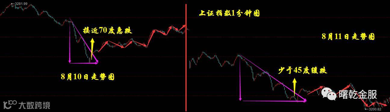 大盘在8月10日的下跌是急跌(角度接近70度),当天提示可以做T+0。