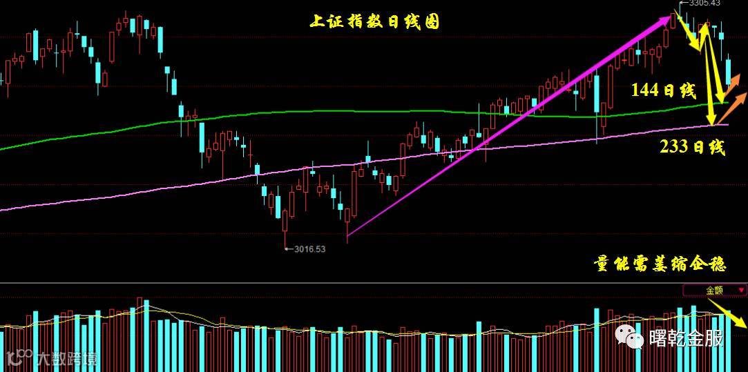 由于大盘过去3个交易日的下跌,量能是逐级放大,若下周能在144日线附近缩量企稳,这里会有反抽,否则,指数将回落至233日线。