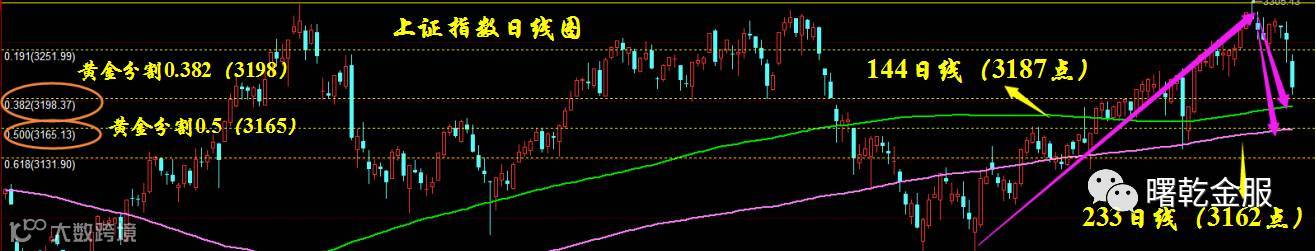 3022-3305点的黄金分割0.382是3198点,大盘的144日线在3187点,较接近,黄金分割0.5是3163点,233日线在3162点,几乎重合。