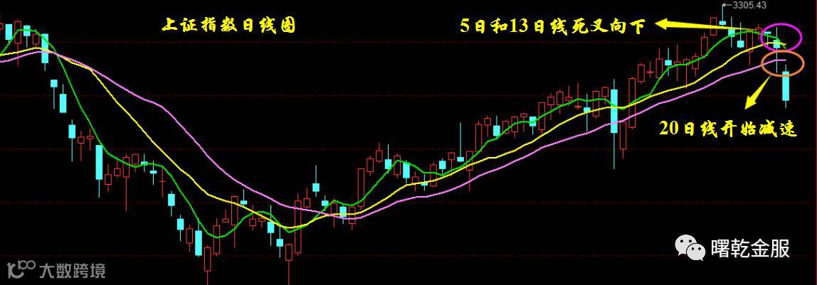 大盘的13日和5日线已拐头死叉向下。21日线也开始减速,下周开始拐弯向下。