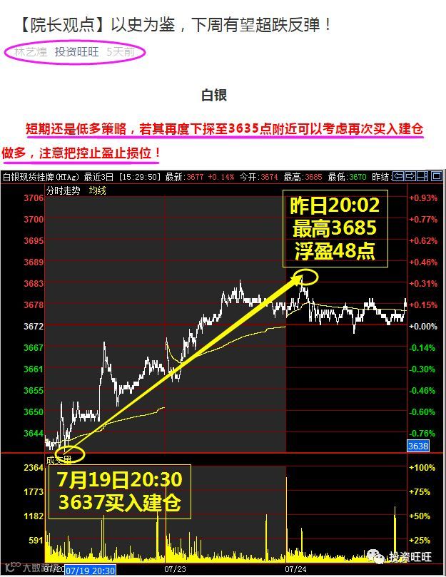 3685新高之下,上周四文章中提示可在3635附近买入建仓,若跟上操作,至昨日20:02左右最大浮盈48点,净获利率33.57%。
