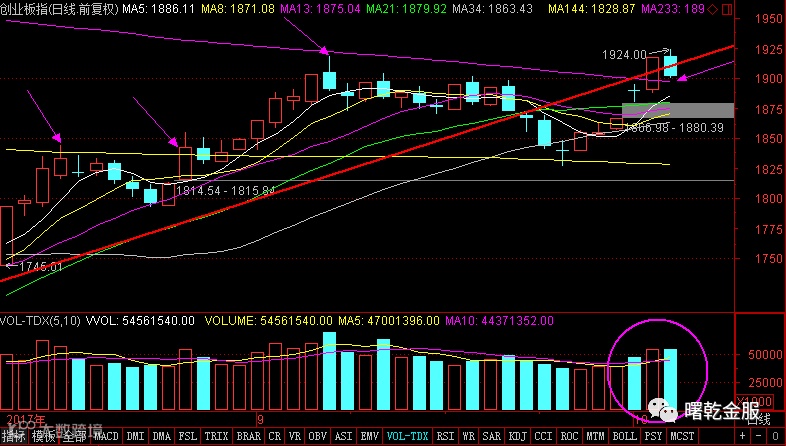 后市只要站稳233日均线,其多将延续上升到上方的377日均线,目标点位在2000附近。