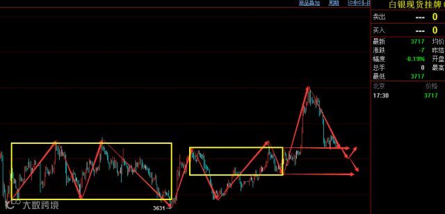 目前华通银技术形态上看,近期出现了连续大幅下跌,昨天已经再次确认跌破了3730的支撑位,并且跌破了3716点的支撑,短期看两小时的三买构建已经完全破坏,市场进入弱势震荡状态。如果从3631开始反弹看,目前下方还有第一个重要支撑3700点,如果跌破只能寻找本级别的中枢底部支撑3680附近,所以目前市场的弱势状态多单的投资者要注意了,目前小级别还没有明显的止跌信号,美元还在不断走强。