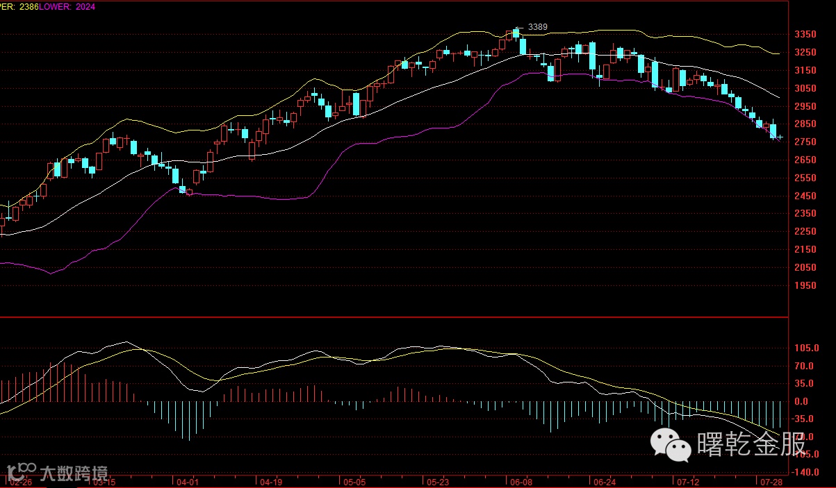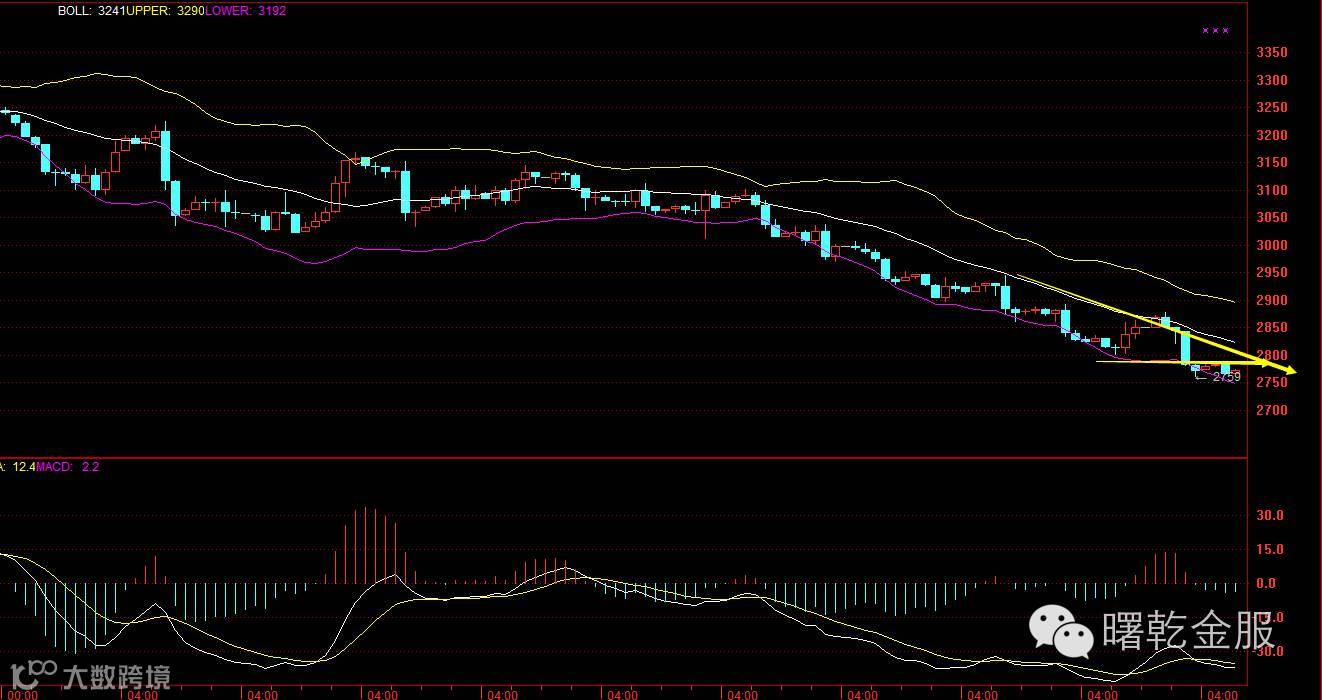 从日线指标来看, K线价格自中轨处承压下行,触及下轨并沿其单边向下运行,且前期低点不断下移,KDJ黏合勾头走平位于超卖区域,MACD双线向下发展,绿柱动能增强。从4H图上看,均线全部向下发散形成阻力,行情一直处于布林带下轨运行承压中轨,持续下行。内部家人可联系分析师助理获取详细策略布局,具体的技术分析及策略操作可重点关注视频直播室。